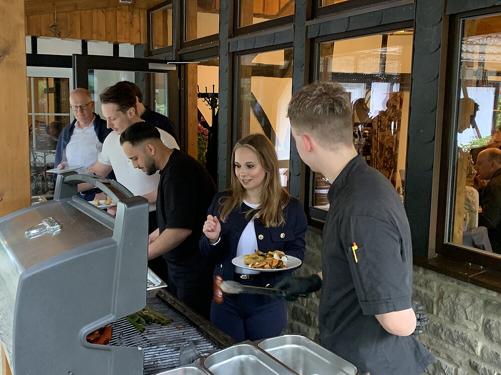 Mit dem Wintergarten der „Holsteins Mühle“ stand uns eine wirklich tolle Location zur Verfügung, in dem uns ein leckeres BBQ bereitet wurde. Selbstverständlich wurde dabei auch an unsere Vegetarier und Veganer gedacht, die mit tollen Gerichten vom flammenden Grill glücklich gemacht wurden.